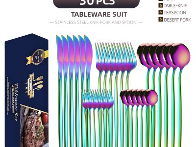 跨境貨源不銹鋼刀叉30件套葡萄牙餐具套裝金色創(chuàng)意西餐牛排刀叉勺