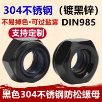 黑色304不銹鋼防松螺母M3M4M5M6M8DIN985鍍黑鋅六角 尼龍鎖緊螺帽