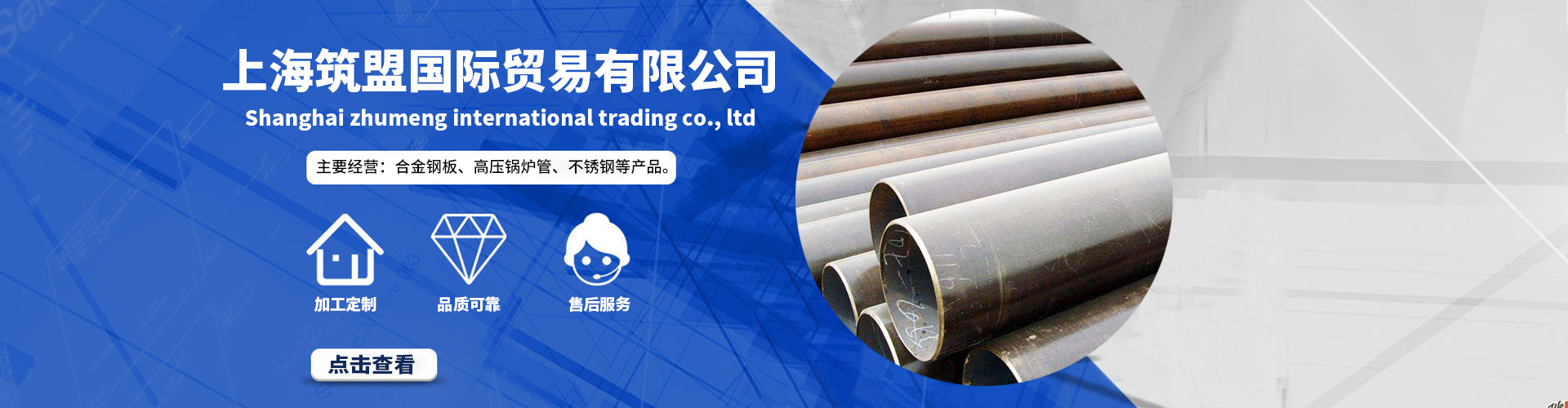 上海筑盟國際貿(mào)易有限公司集鋼鐵貿(mào)易、倉儲、加工生產(chǎn)、物流配送為一體的綜合性大型現(xiàn)代化企業(yè)。公司位于亞洲鋼鐵貿(mào)易服務中心上海市寶山,交通便利,鋼材齊全。優(yōu)越的工作環(huán)境,雄厚的技術(shù)力量,高質(zhì)量的售后服務,吸引眾多新老朋友前來洽談業(yè)務公司擁有來自各地的合作客戶。 [